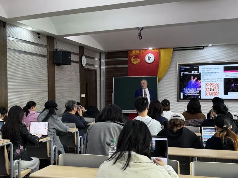 Wegerif教授围绕“人工智能时代下教育体系的意义”、“作为新技术的生成式AI如何促使我们重新思考教育的目的”以及“艺术和戏剧在教育愿景当中扮演怎样的角色”几个问题展开演讲,为在场师生提供了前沿学术视角。