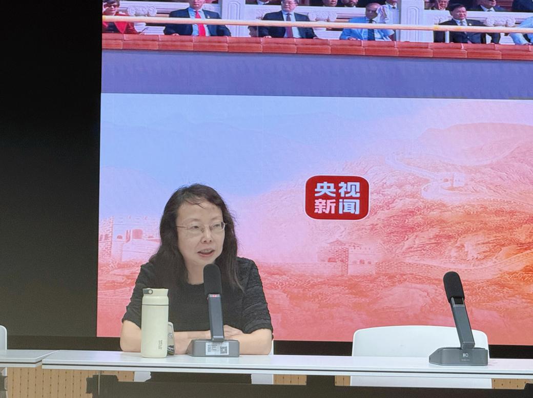 陈莹、顾振辉、李冉、黄静枫等老师从文艺创作与历史叙事、知识救国与专业报国、国力展示与维护和平、文化外宣与国际话语权、历史纪念与精神传承等不同维度,交流了对习近平总书记在纪念中国人民抗日战争暨世界反法西斯战争胜利80周年大会和招待会重要讲话精神的理解、思考与感悟。