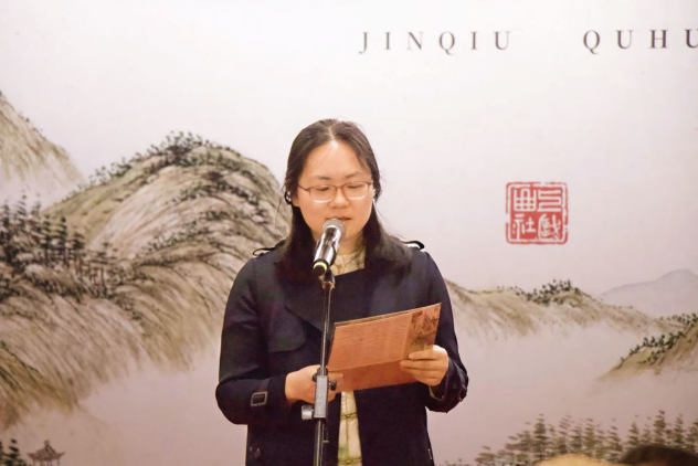 随后,广州大学人文学院副教授仝婉澄演唱《玉簪记》【朝元歌】,唱出了陈妙常在情欲与礼法间的内心挣扎。首位登台的周子健再度返场,献唱《长生殿·弹词》【五转】,以情入声,声情并茂,赢得满场热烈掌声。压轴出场的来自沈阳音乐学院的白宁教授带来《牡丹亭·寻梦》【懒画眉】与《牡丹亭·离魂》【集贤宾】,由周象耕老师古琴伴奏,唱声婉转,琴声悠然,声与琴相映成趣,尽显昆曲之雅韵。