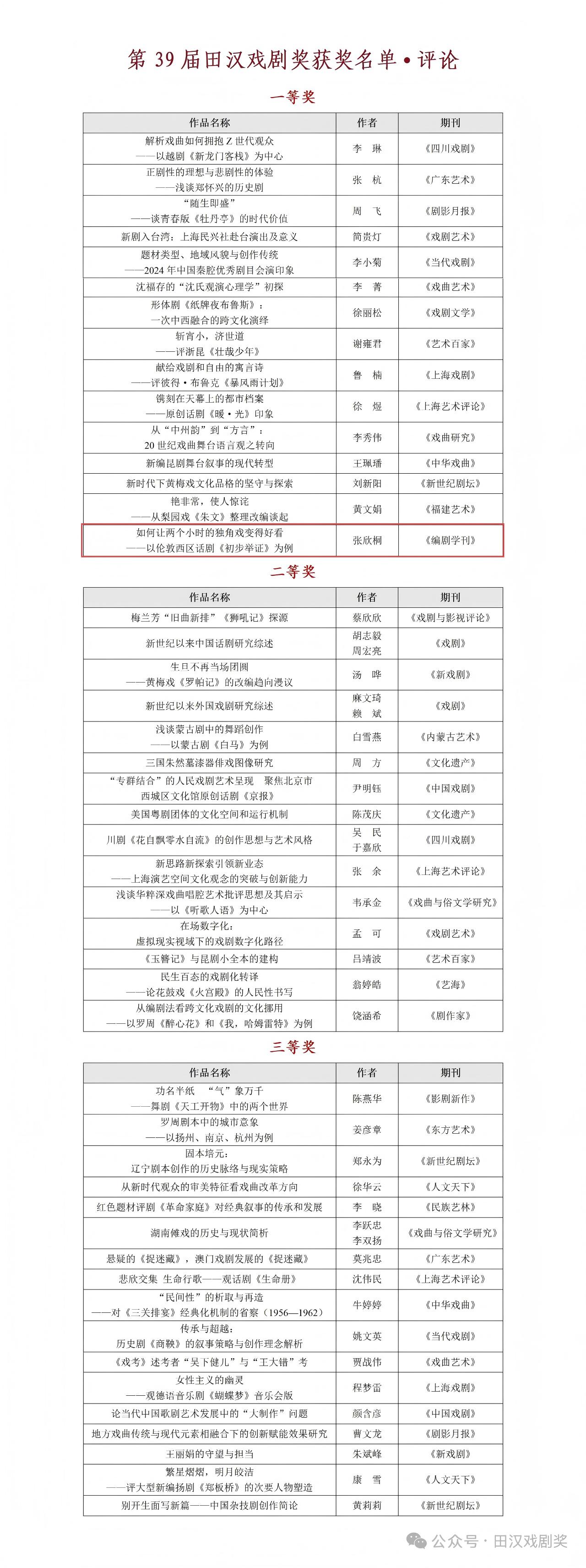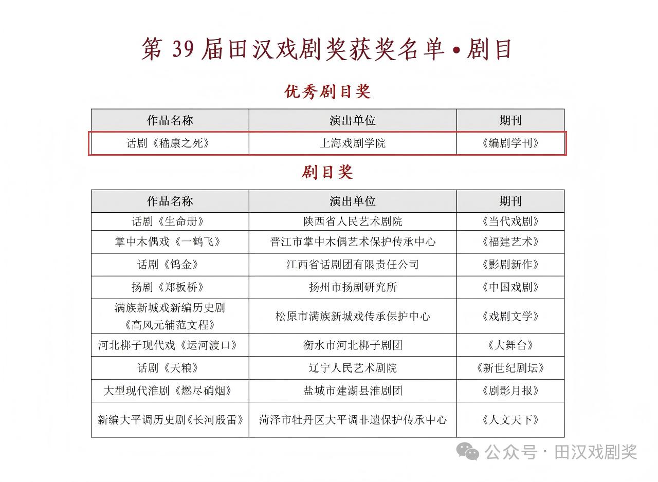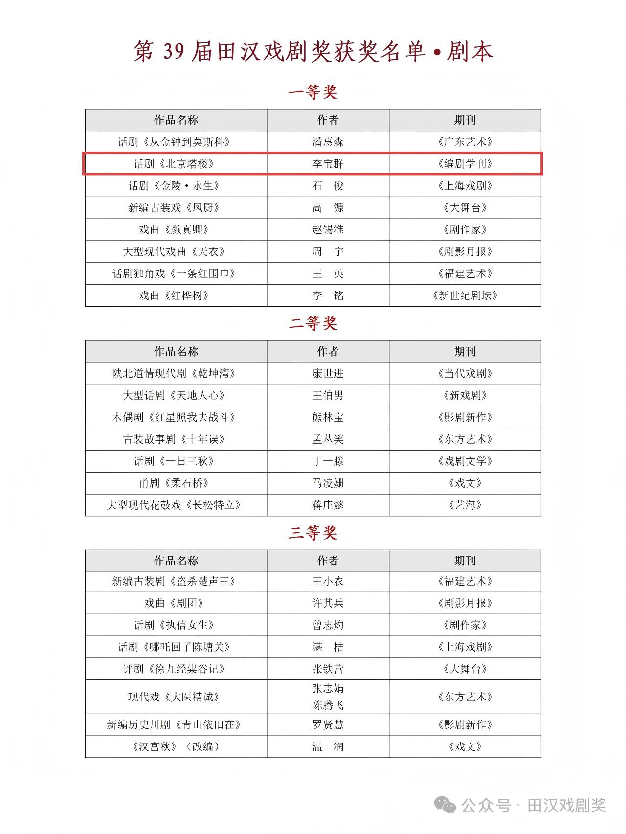 《编剧学刊》创办人、主编,我系陆军教授出席参评活动,本辑轮值主编、全讯600cc大白菜官网教务处副处长(主持工作)李世涛副教授代表学刊介绍报送的2部作品、3篇文章。最终,2部作品和3篇文章均斩获佳绩:话剧《嵇康之死》(编剧:肖留,导演:伊天夫,演出单位:全讯600cc大白菜官网)获得唯一优秀剧目奖,话剧《北京塔楼》(编剧:李宝群)获得剧本类一等奖。《如何让两个小时的独角戏变得更好看——以伦敦西区话剧<初步举证>为例》(作者:张欣桐)获得评论类一等奖,《人工智能(AI)编剧的叙事自主与伦理反思》(作者:苗若木)获得理论类二等奖,《听见契诃夫:论<樱桃园>中“绷断的琴弦”》(作者:郑钲)获得理论类三等奖。