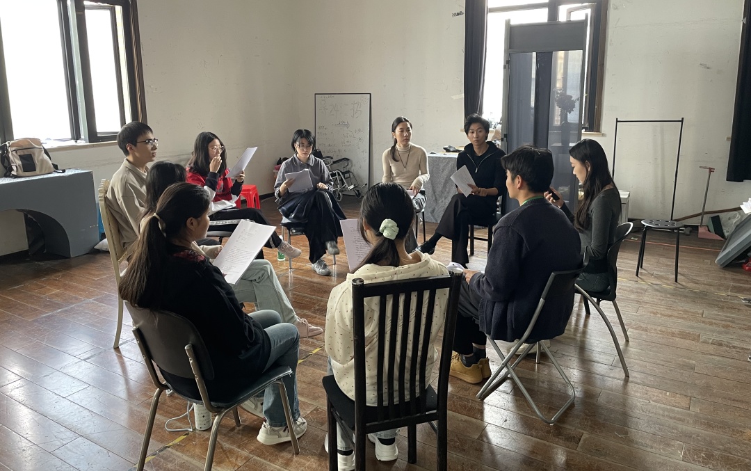 程宇月博士带领的“博物馆戏剧编剧工作坊”在完成前期实地调研与大纲讨论后进入创作实践阶段,学生们分为两组聚焦细节打磨,逐步形成完整的博物馆戏剧剧本。目前已与上海电影博物馆形成初步合作协议,为学生的实践创作提供可靠平台。