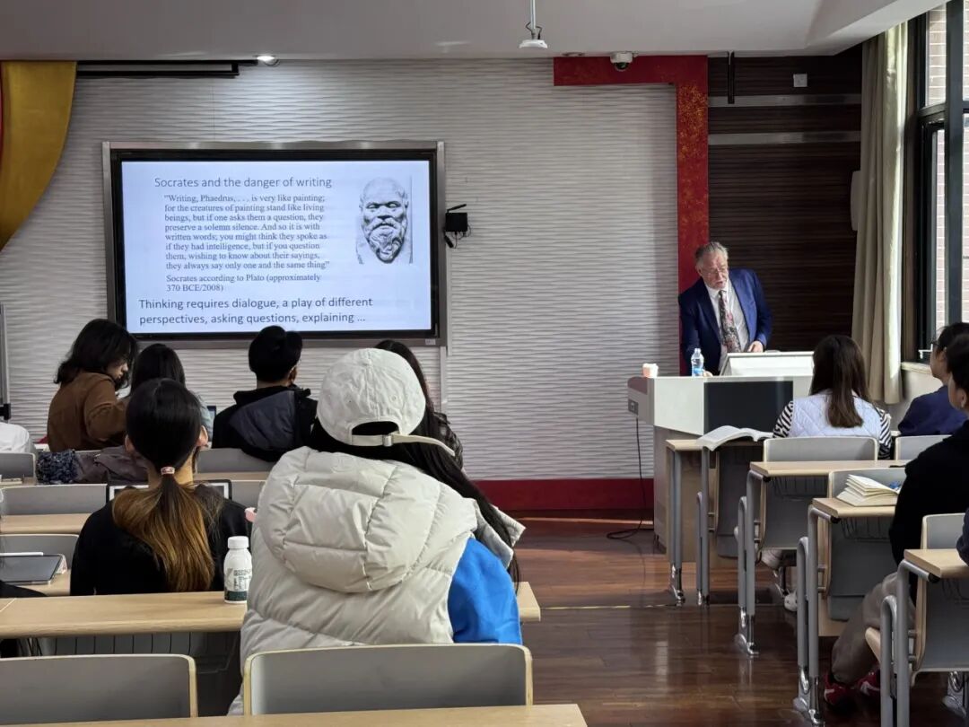 11月10日,剑桥大学教育学院教授、数字教育未来中心(DEFI)创始人兼学术负责人Prof. Rupert Wegerif,带来了主题为“The Importance of Art and Drama Education in the Age of AI”(“人工智能时代下艺术与戏剧教育的重要性”)的讲座。作为对话式教育领域权威学者,Wegerif教授围绕“人工智能时代下教育体系的意义”、“作为新技术的生成式AI如何促使我们重新思考教育的目的”以及“艺术和戏剧在教育愿景当中扮演怎样的角色”几个问题展开演讲,为在场师生提供了前沿学术视角。本次讲座由600全讯白菜网党总支副书记、系主任沈亮老师主持。